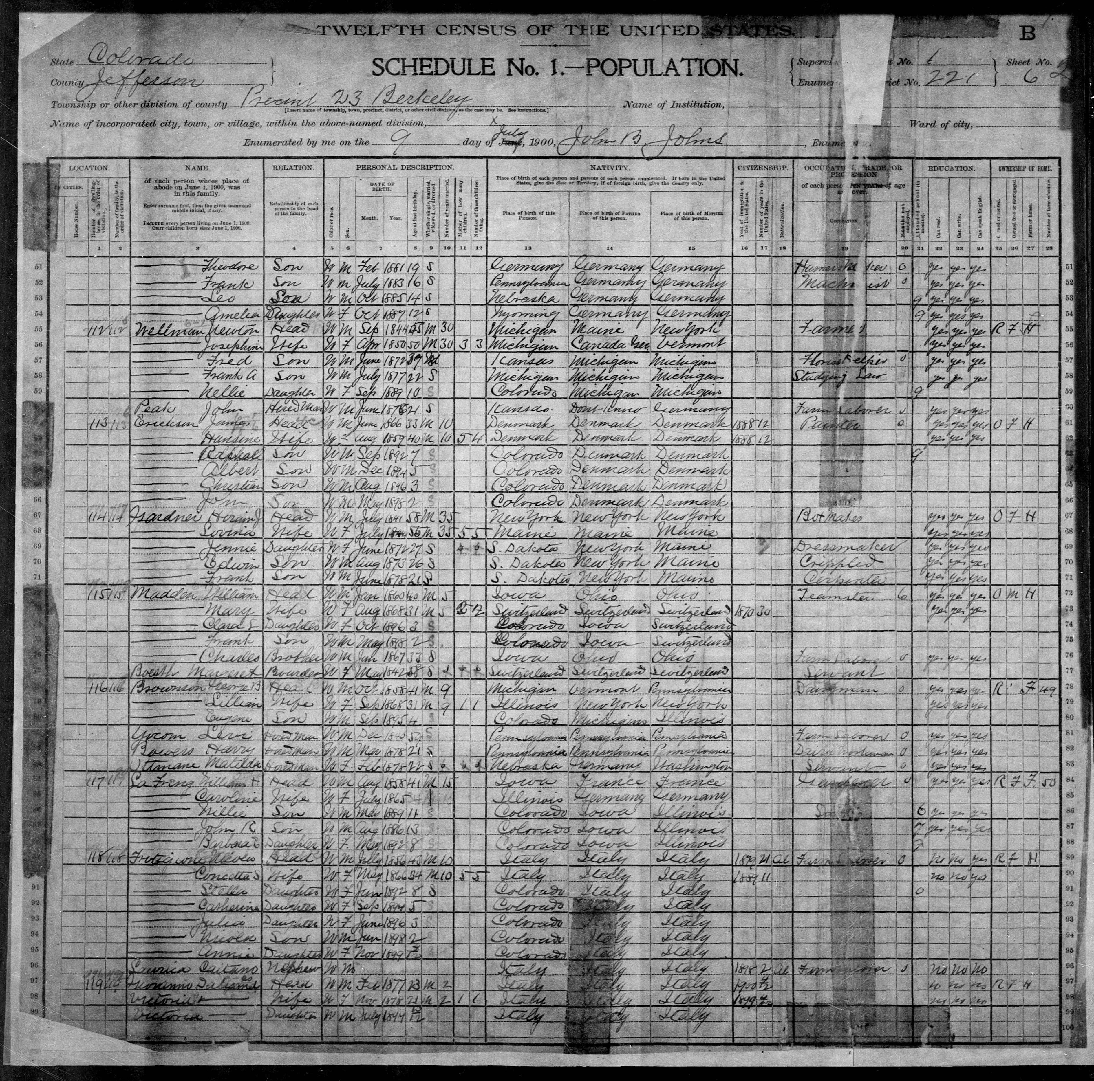 The 1900 Census for Jefferson County shows the Madden Family living in a home they owned and William worked was a "teamster" for six months. The 1910 Colorado Census shows they were living in Adams County on their farm as does the 1920 and 1930 census. Census records from familysearch.org. |