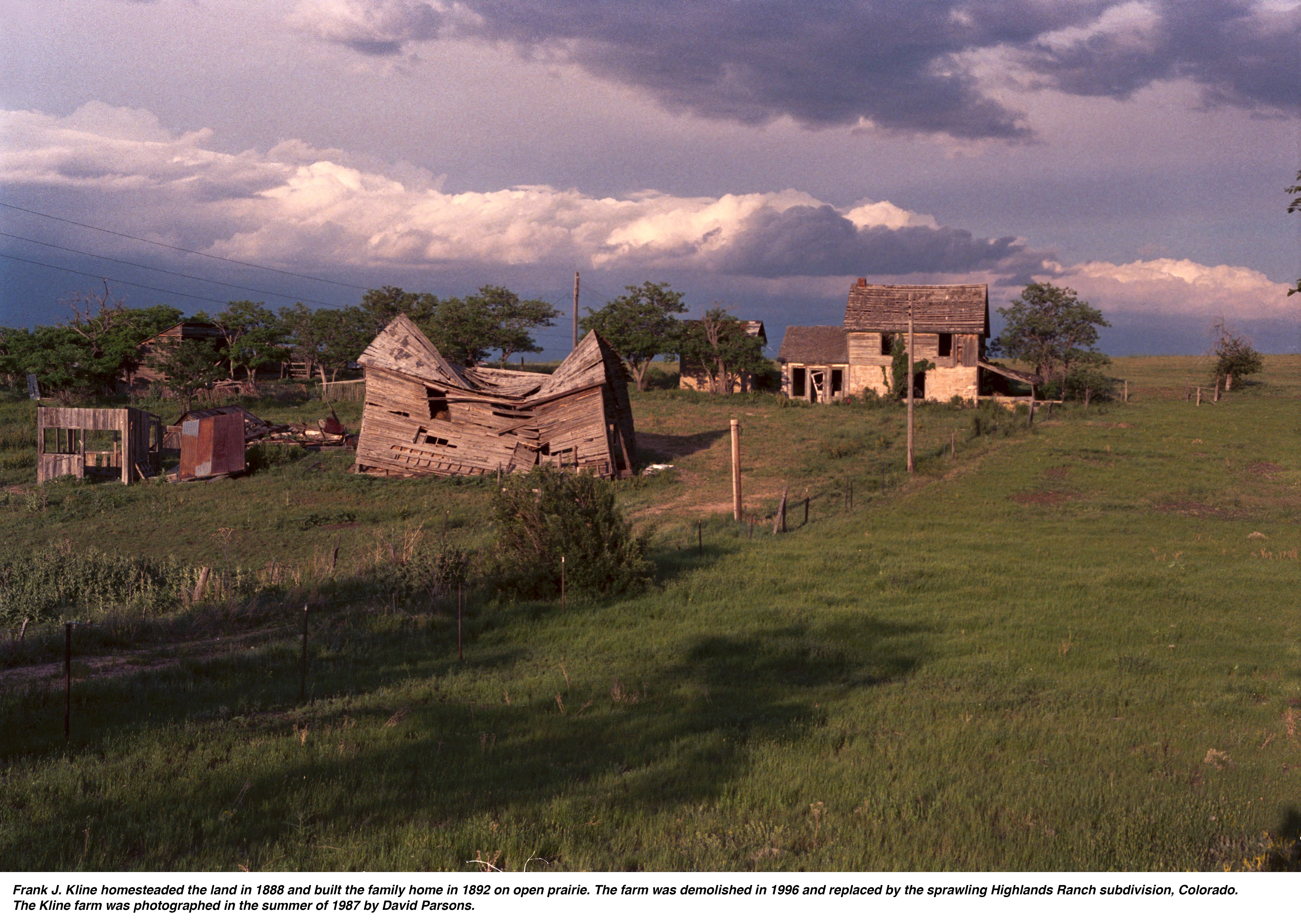 Once standing along side the old dusty and washboarded Daniel's Park Road where small herds of pronghorn would wander by, the decaying farm with its stone and wooden buildings was a monument and reminder of the past hardships of those early settlers. Heavy snows broke the back of the old barn as the middle of the roof slowly collapsed throughout the years. The landmark survived over a 100 years from 1892 through countless Colorado's storms and heavy snows, but eventually, could not survive the demolition of developers.