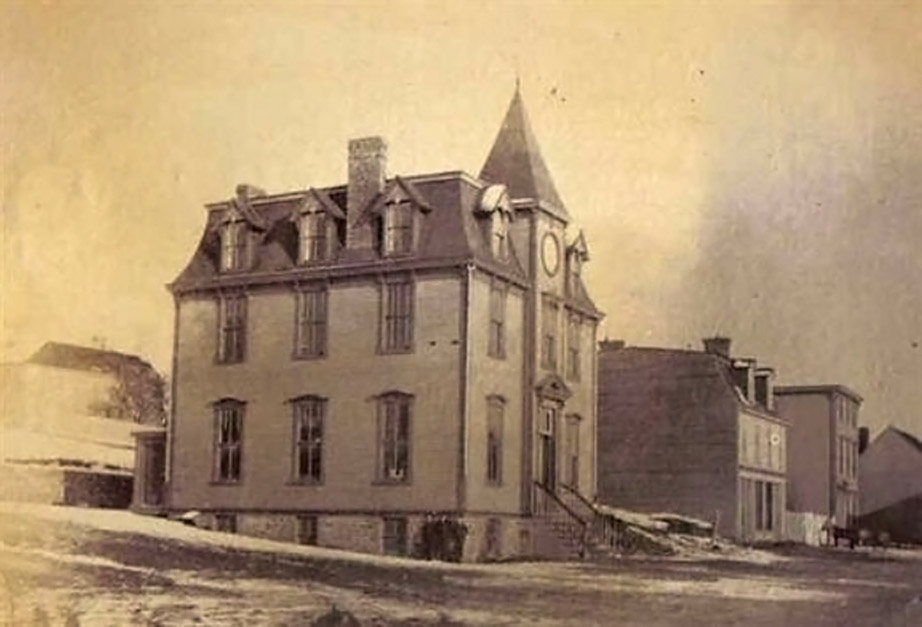 The first house on the far left was Jane Kielly's brew shop and candy place. They had a licence to brew beer and was a favorite watering hole, especially in the days of the horse and cart, not so much in later years. They also made candy - Bull's Eyes and Lassy Knobs. The second place on the left belonged to Constable Gideon Benson, who helped when the fire occurred. This building was torn down around the 1990's. The next house bellonged to Merchant John Duff and in later years was occupied by Dr. Leslie Wells, a surgeon who came from England. The house is still there today, but looks quite different. The next house was occupied by John Bemister and later William Moores and later still, Dr. Murray. The small house at the top of the hill was owned by Richard Ash. On the other side of the street Samuel Penney (later Gilbert Penney) owned the house close to the fire location.