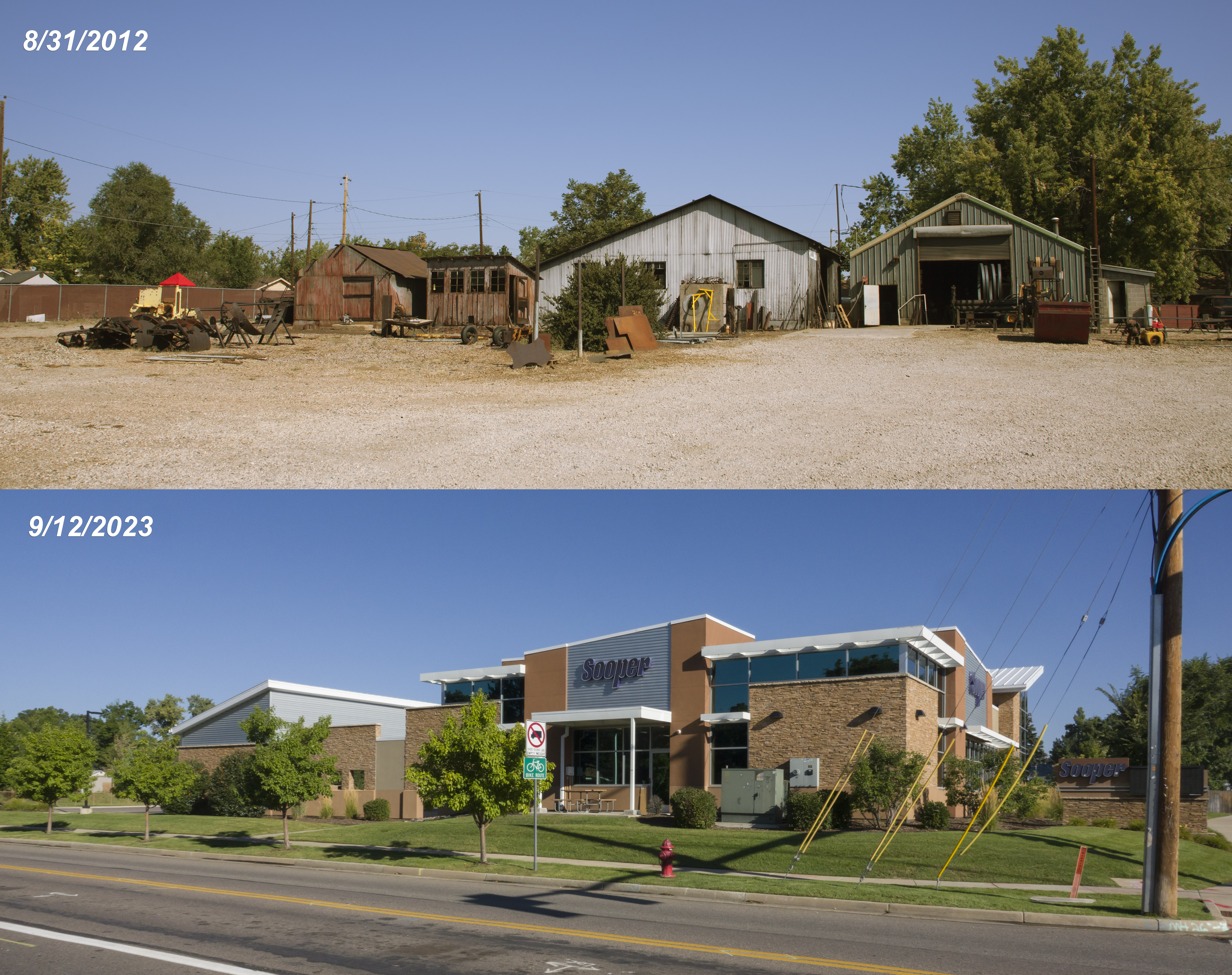 Once located at the intersection of South Wadsworth Boulevard and West Florida Avenue, the Gorrell Iron Works was opened in 1930 by Fred Gorrell, the son of a local dairy farmer, William T. Gorrell, whose farm was found just to the west. Fred opened his metals shop on property given him by his father. He also constructed a brick home with an underground garage - an uncommon architectural feature at the time, along with a corrigated metals building to house his iron repair business. There were also a number of other buildings, including sheds, chicken coop and always required outhouse. The old buildings were torn down and replaced with a parking lot and an office building which housed a Sooper in 2023 and now houses a Climb Credit Union in 2026.