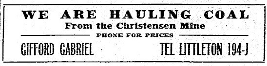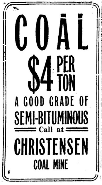 "A boiler and steam hoist have been moved to the Christensen coal mine west of Littleton and Mr. Christensen is making preparations to take out a great quantity of coal. Eleven feet of bright shiny coal of an exceptional quality for this district has been opened up at a depth of about 80 feet. There is plenty of water and the coal is getting better every foot as the shaft is sunk. There is little doubt now that Mr. Christensen has opened one of the best coal fields in the state and there will be much coal taken out between Littleton and the foot-hills."