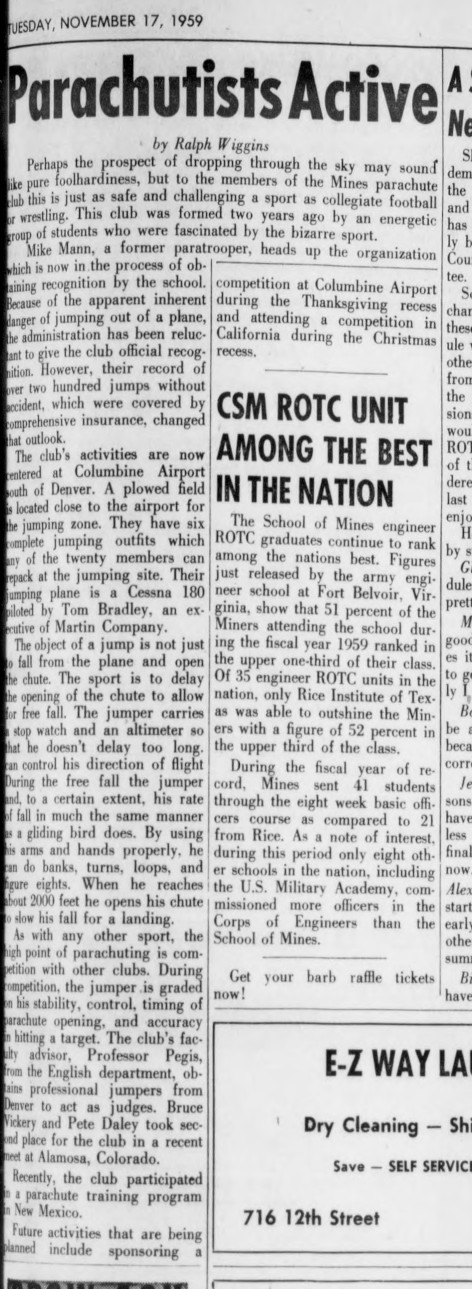 The Colorado School of Mines Parachute Club, the Denver Sport Parachute Club and the Littleton and Evergreen Civil Air Patrol squadrons met here. Sky diving contests and numerous air shows also performend here before Columbine closed