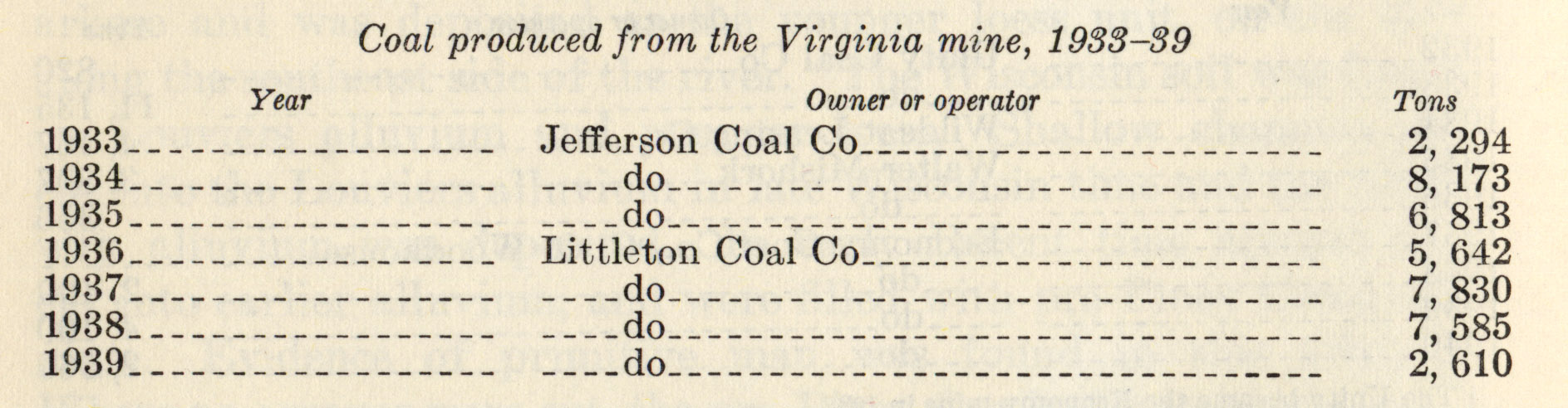 Coal from the Virginia Mine 1933 - 1939. P. 42 - Geology of the Littleton Quadrangle Jefferson, Douglas and Arapahoe Counties Colorado |