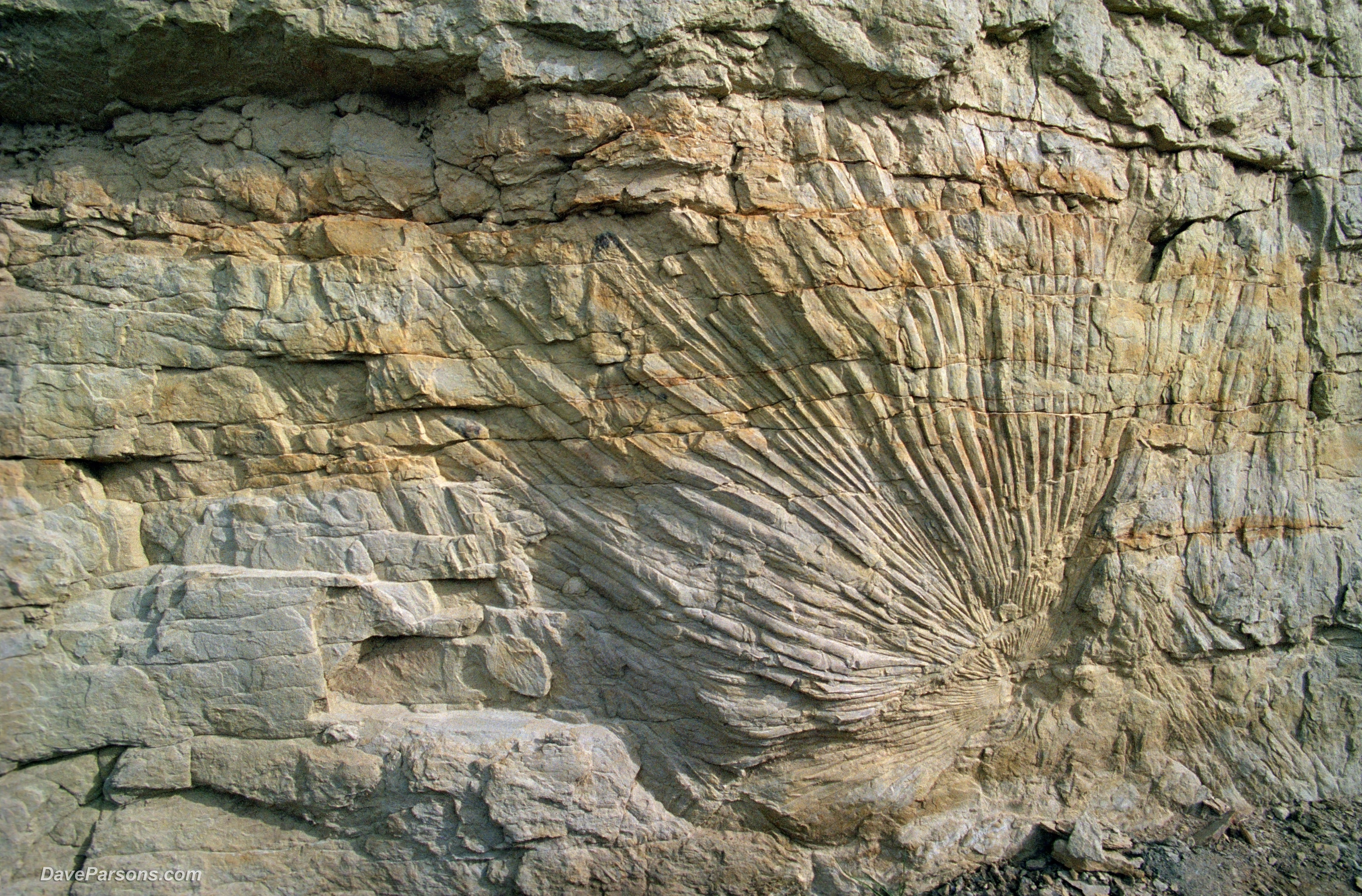 Exposed by clay mining in early 1900s and frozen in time, a spectacular 68 million year old tropical palm frond fossil in Golden Colorado's Triceratops Trail exhibits the diversity of life in the Late Cretaceous Laramie formation which also produced massive amounts of coal mined along the Front Range. Photo taken on November 9, 2002 by David Parsons |