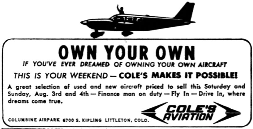 Surprisingly, the Columbine Airport or Airpark, built about 1959, was on the high point on the corner of S. Kipling and W. Ken Caryl Ave.