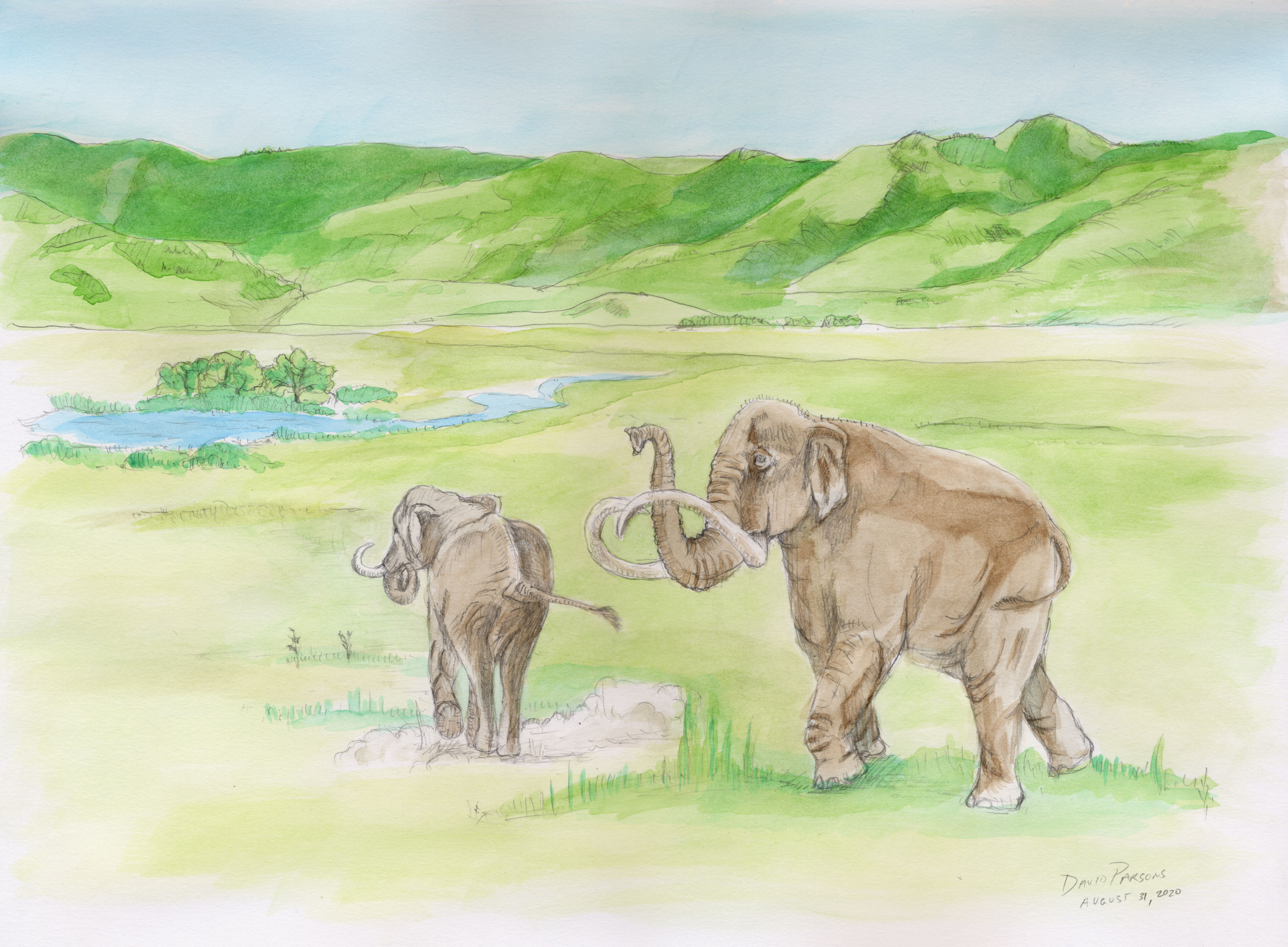 Replaying the scene in my head, I closed my eyes and watched in slow motion that giant tail stretched straight out as he made that giant leap across the river surrounded by fall colors and canyon cliffs. Now I know why the bighorn were on edge over an hour ago. Looking at my time lapse photos in the camera, I could see the profile of a tiny mountain lion that had walked up and down the river bank and had even stood on one of the boulders in the middle of the river for a moment. With the sky growing dark, I pulled myself away from where the lion disappeared, retrieved my tripod and hiked back to civilization, occasionally looking back to scan the riverbank and hills. A Mammoth Site Circling in the distant blue sky, a hawk screeched as our tribe of modern Covid-19 masked humans walked across the rolling hills of dry prairie grass just over a mile away from the South Platte River. In the morning summer heat, we were looking for wildlife, extinct wildlife that lived during a cooler time in the last Ice Age. As glaciers were retreating, massive ice age megafauna like Columbian mammoths, huge bison, camels, horses, giant sloths, wolves, coyotes and pronghorn that once wandered through this grassy corridor were drawn to the refreshing water found at an ancient wetland spring now called Lamb Spring.