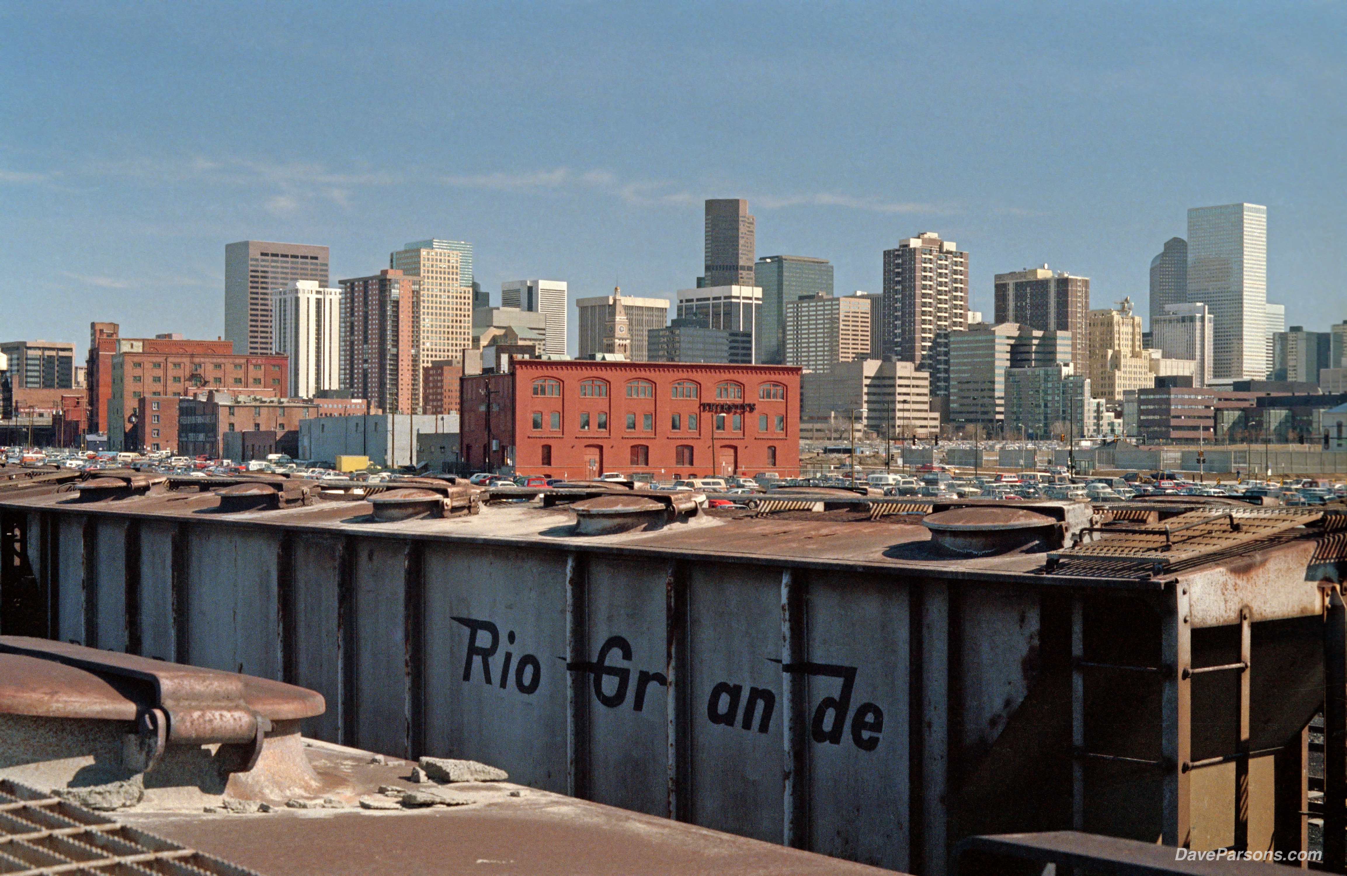 In 1989, while taking classes on the Auraria Campus, the adjacent freight rail yards with historic buildings and lines of railroad cars made for a great spot to explore. Parsons photo
