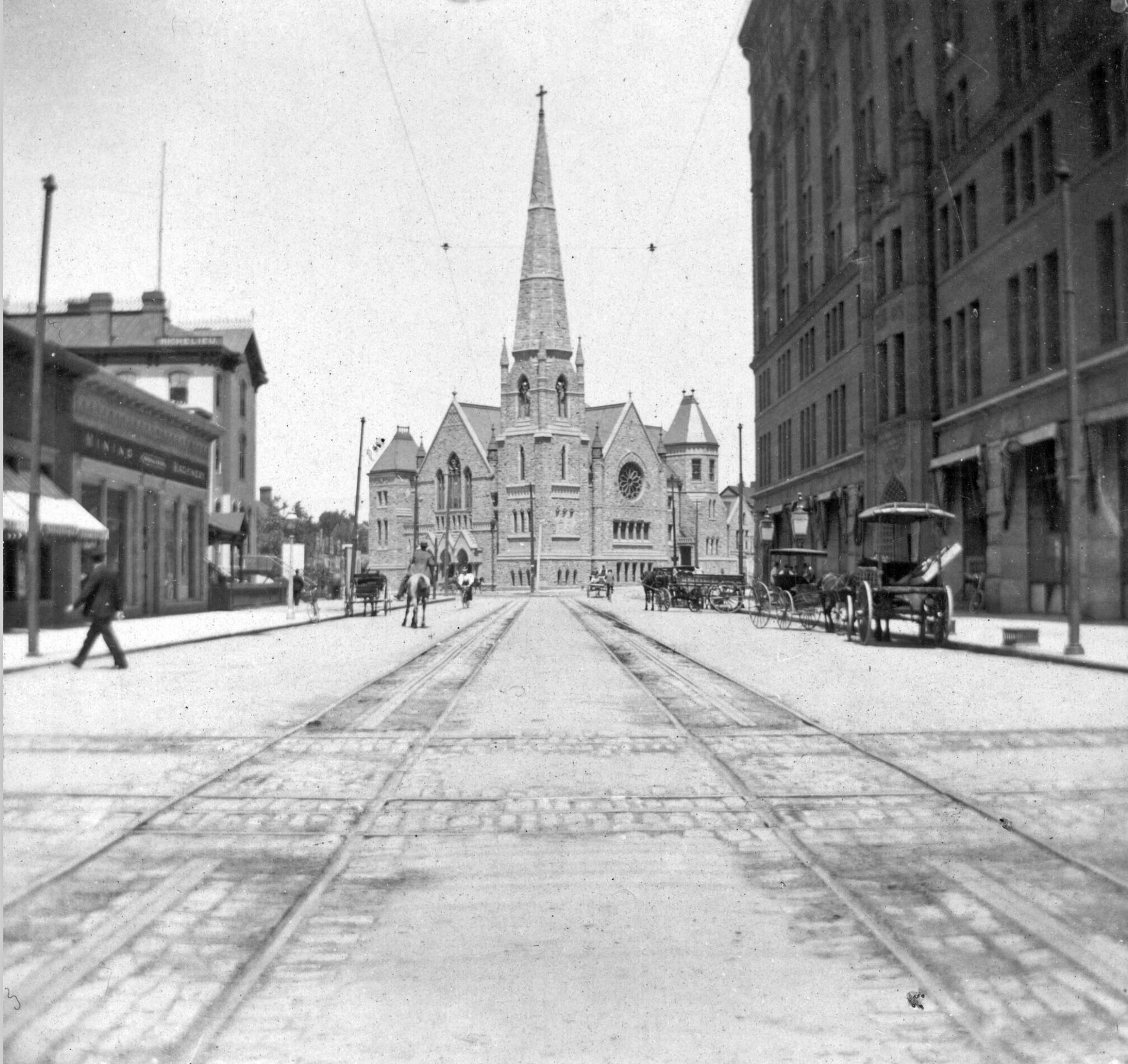 In 1871, when a dusty Denver was growing in leaps and bounds, the first tracks were laid down for horse drawn trollies by the Denver Horse Railroad Company. Later, in the 1880s, Denver Tramway dug trenches in between rails and introduced a conduit current system to power electric streetcars. After a few years, in 1888, due to expenses they switched to a network of cables which were threaded through the city like a giant maze. The centrally located Denver City Cable Railway Building at 15th Street and Colfax Avenue was a coal fired powerhouse that pulled the cable driven trollies through the network.
